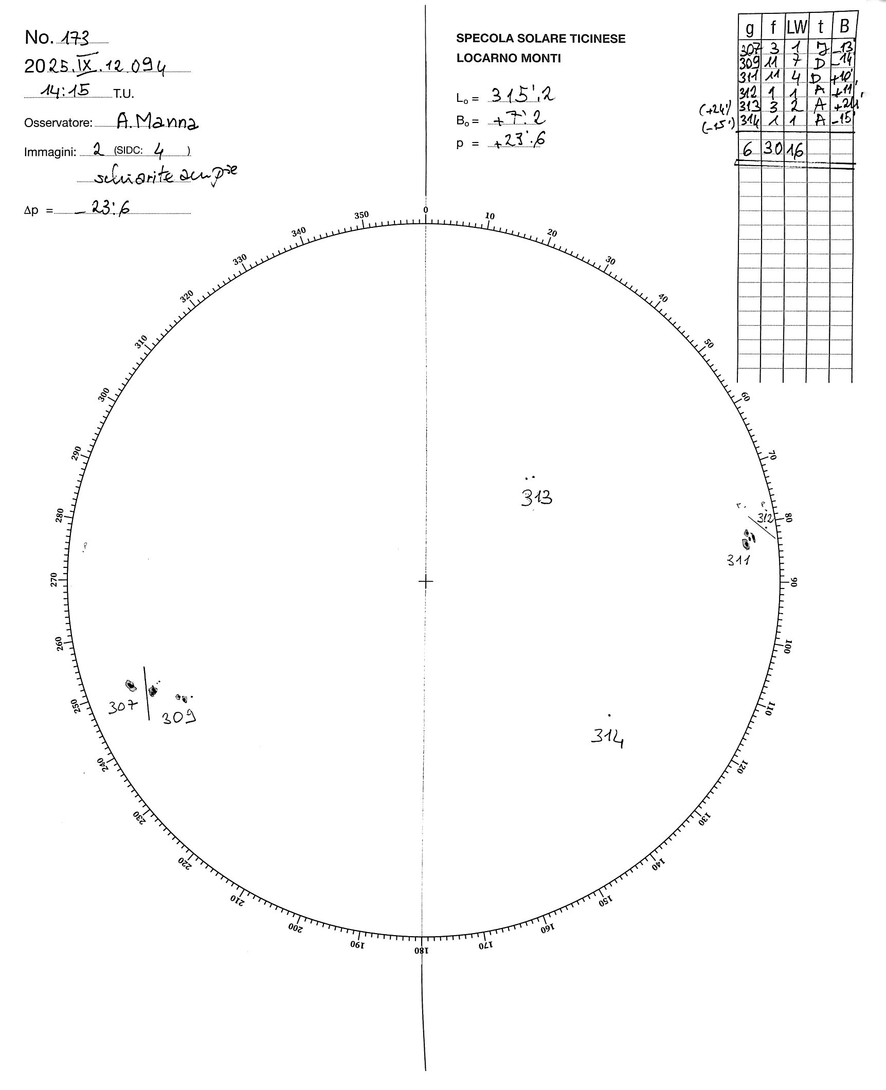 Sunspot drawing of 2025-9-12