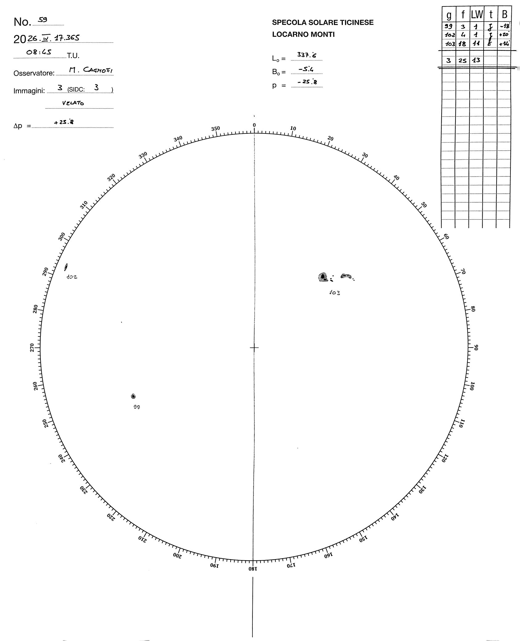 Sunspot drawing of 2026-4-17