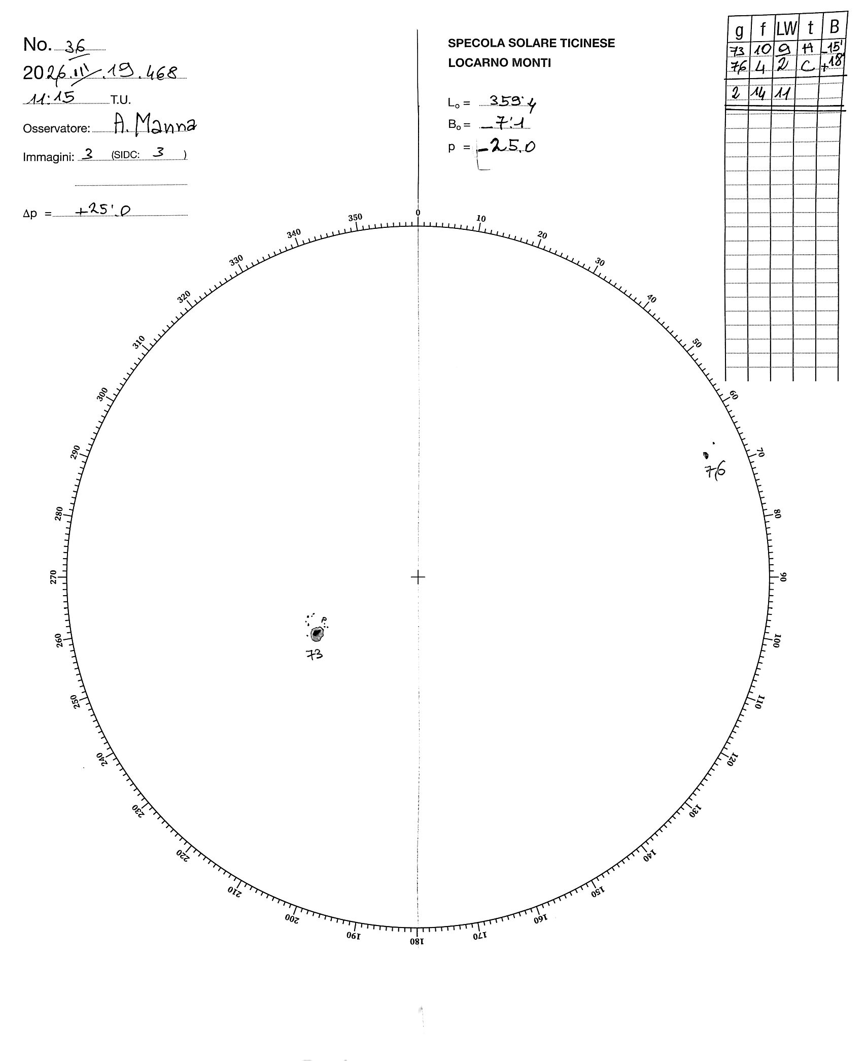Sunspot drawing of 2026-3-19