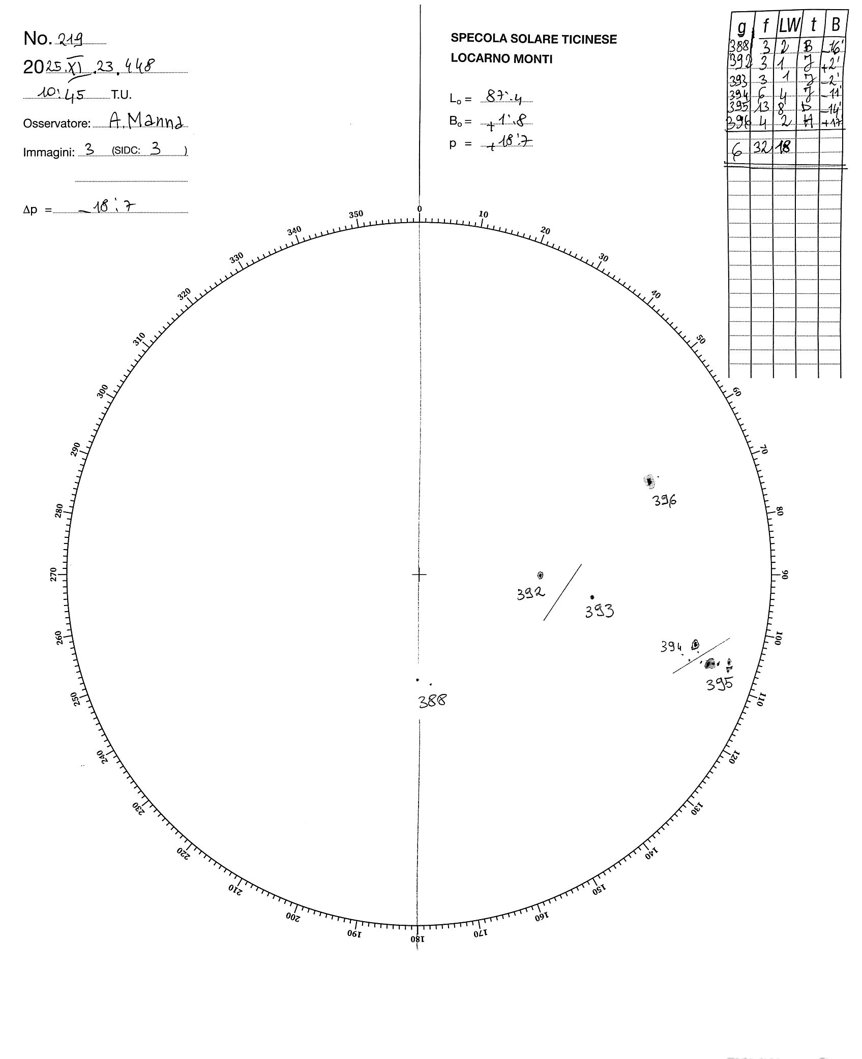 Sunspot drawing of 2025-11-23