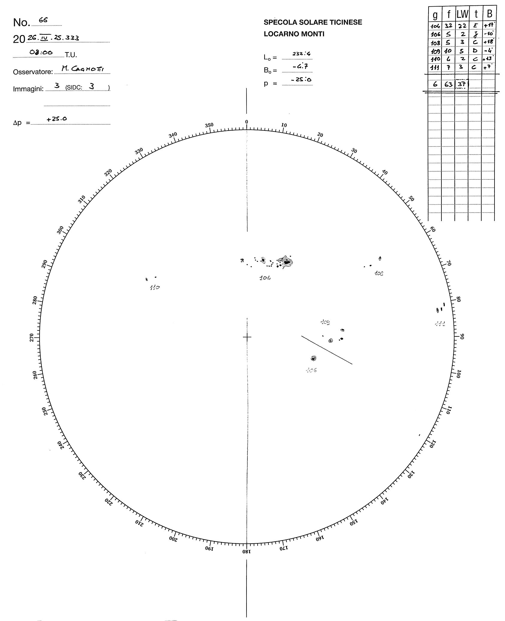 Sunspot drawing of 2026-4-25
