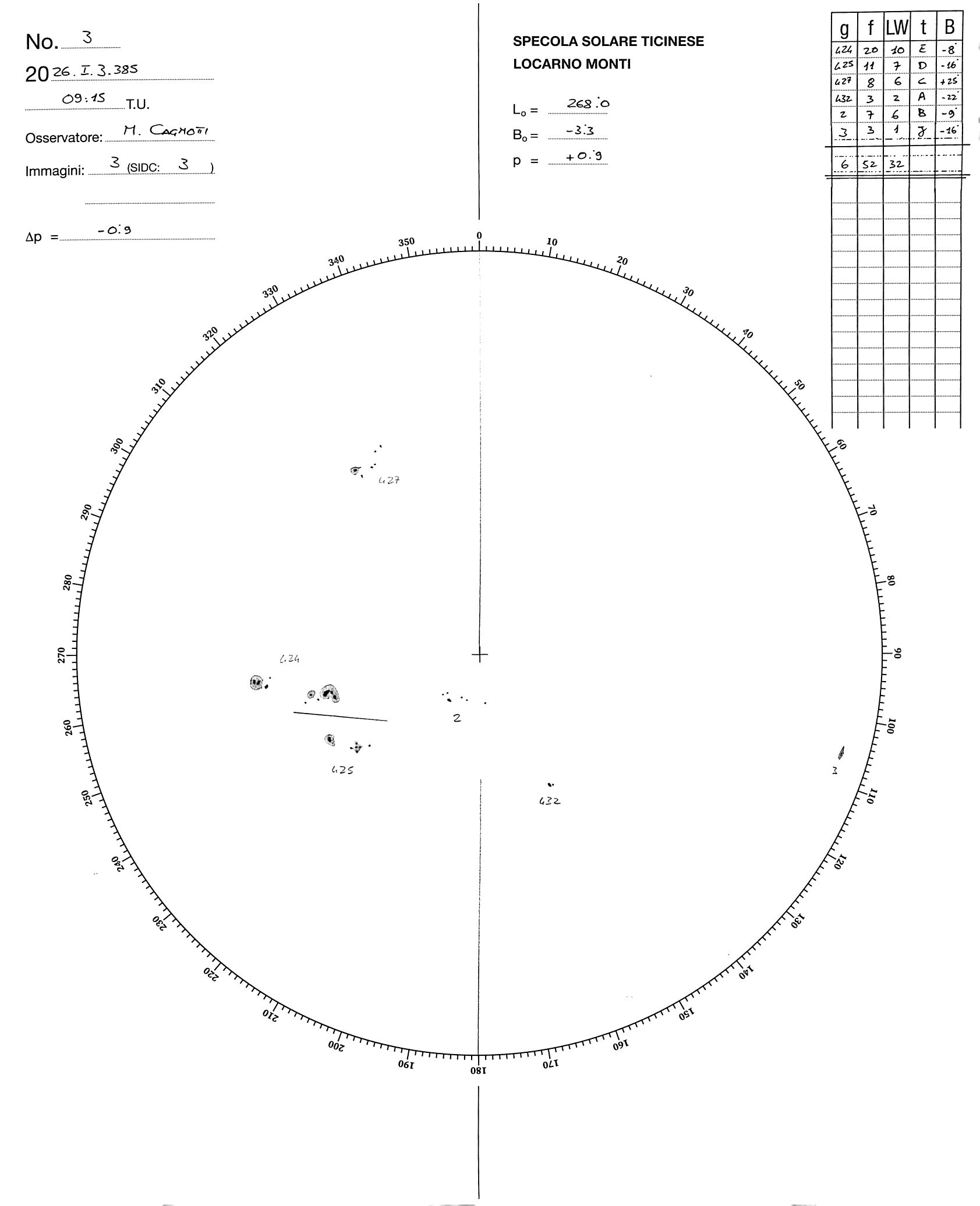 Sunspot drawing of 2026-1-3
