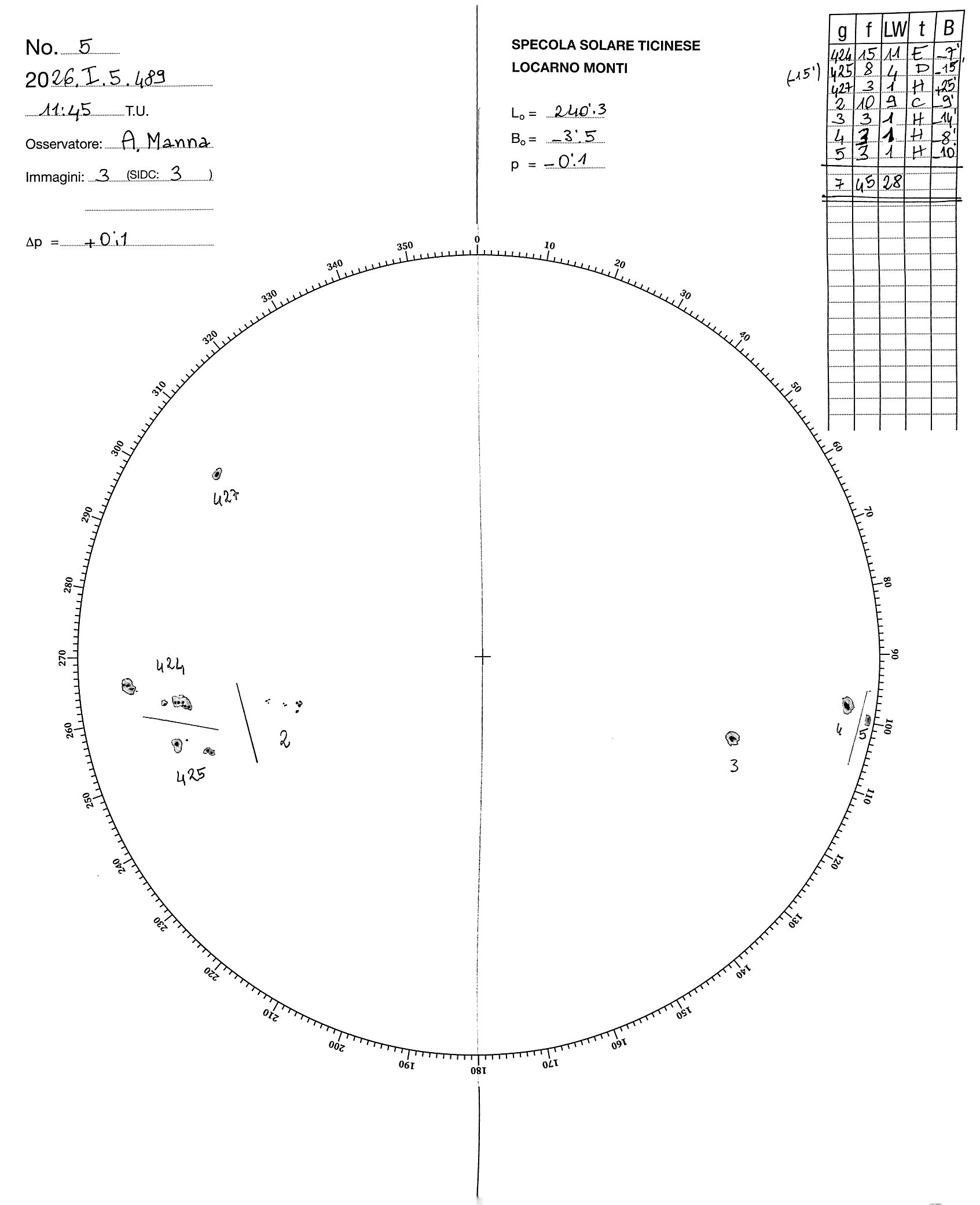 Sunspot drawing of 2026-1-5