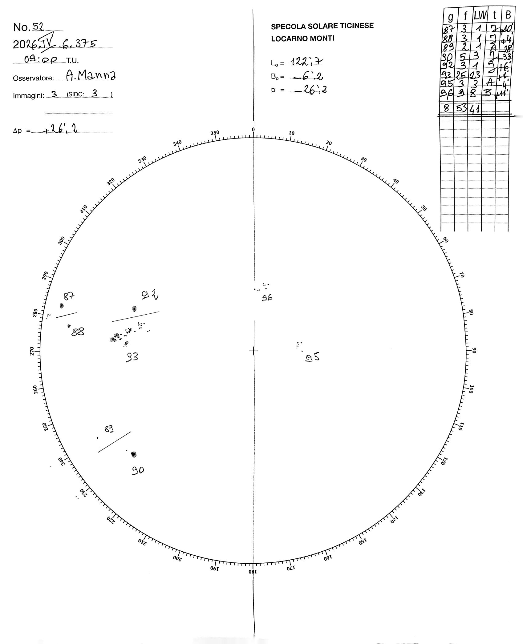 Sunspot drawing of 2026-4-6