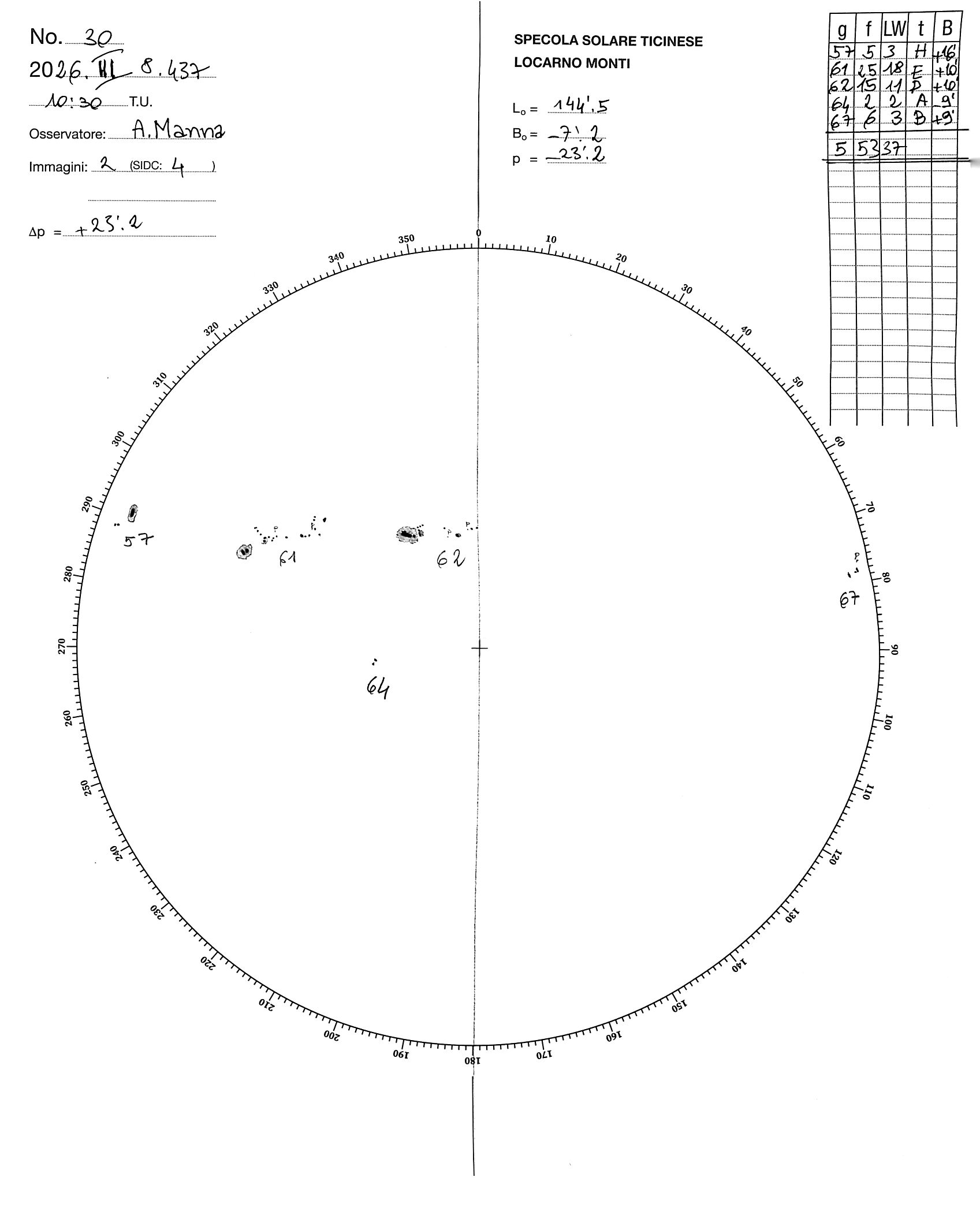 Sunspot drawing of 2026-3-8
